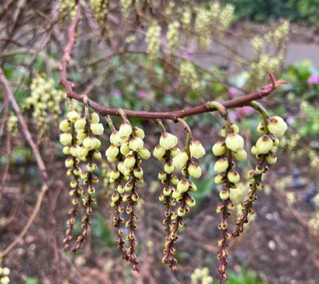 The light is changing as the sun moves higher in the southern sky. The ground is warming, and the invasive blackberry shoots are waking up more quickly than the spring bulbs. I have begun to remove the leaves that I left blanketing the beds over the winter. I linger a bit and survey how the plants weathered this fickle winter. A few of the older bushes died and will need to be cut back or uprooted. I will miss their delicate white flowers and scent.